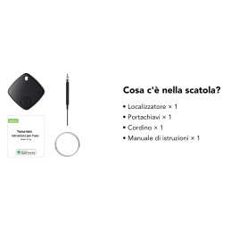 Funzionano con Apple "Dov’è": È sufficiente utilizzare l'App e aggiungere il tag alla voce "Altro oggetto supportato". A questo punto è possibile trovarlo in qualsiasi parte del mondo utilizzando la rete di milioni di dispositivi Apple. (Nota: Non disponibile su Android)